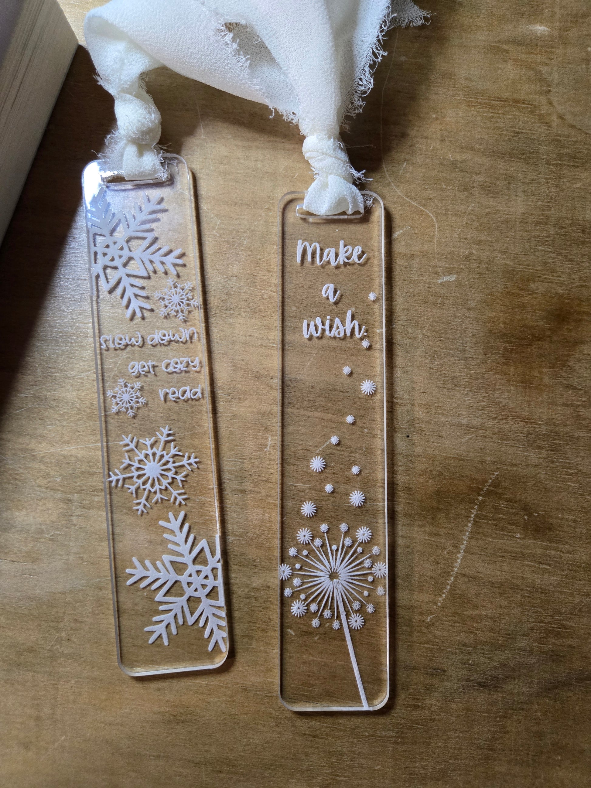 Engraved Acrylic Bookmark – Cozy Snowflake or Dandelion Design