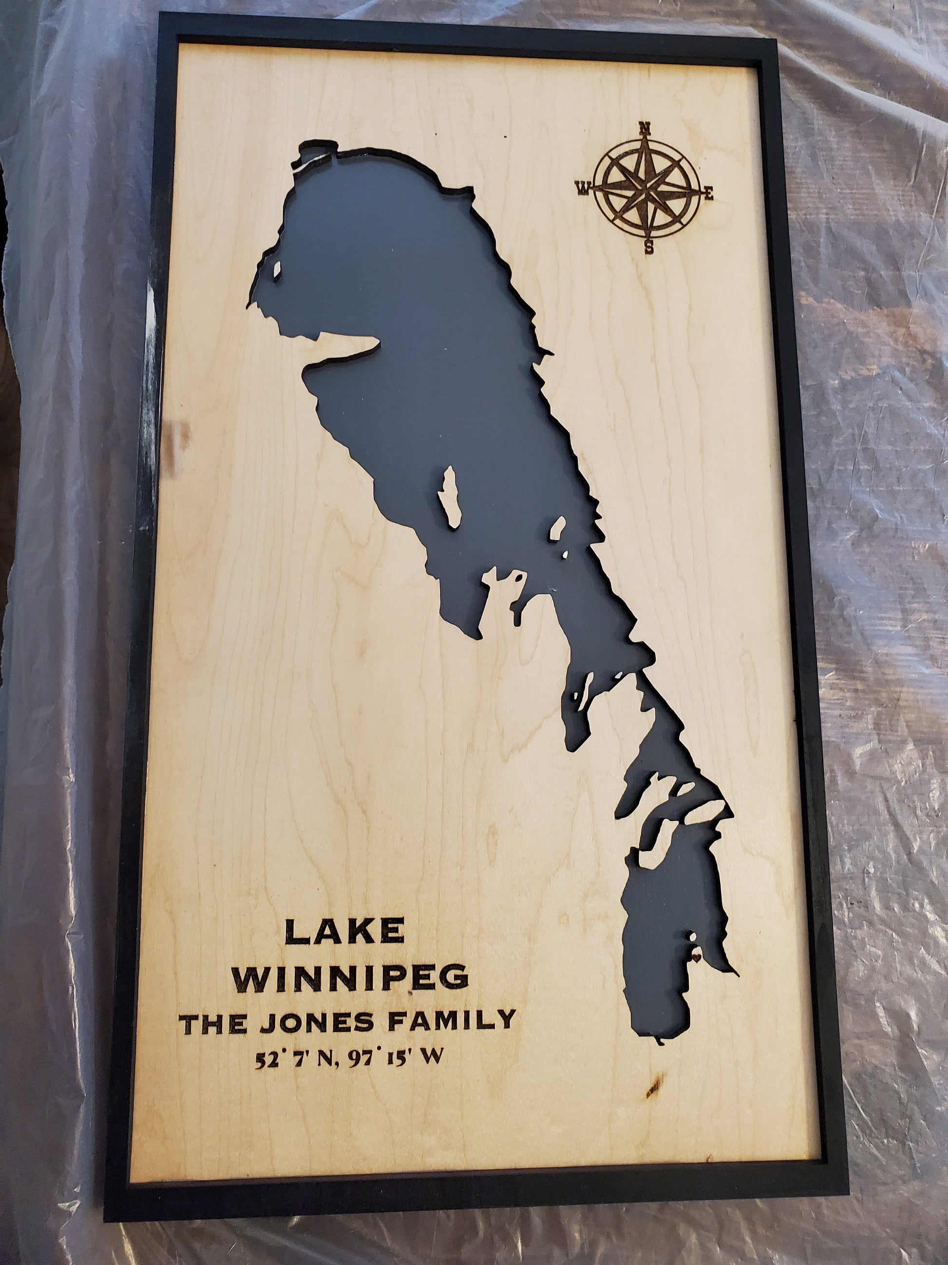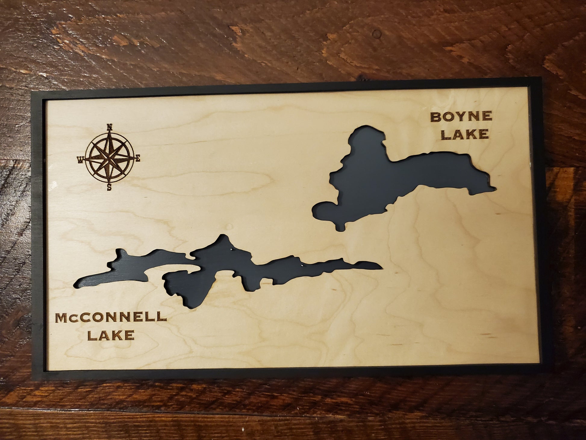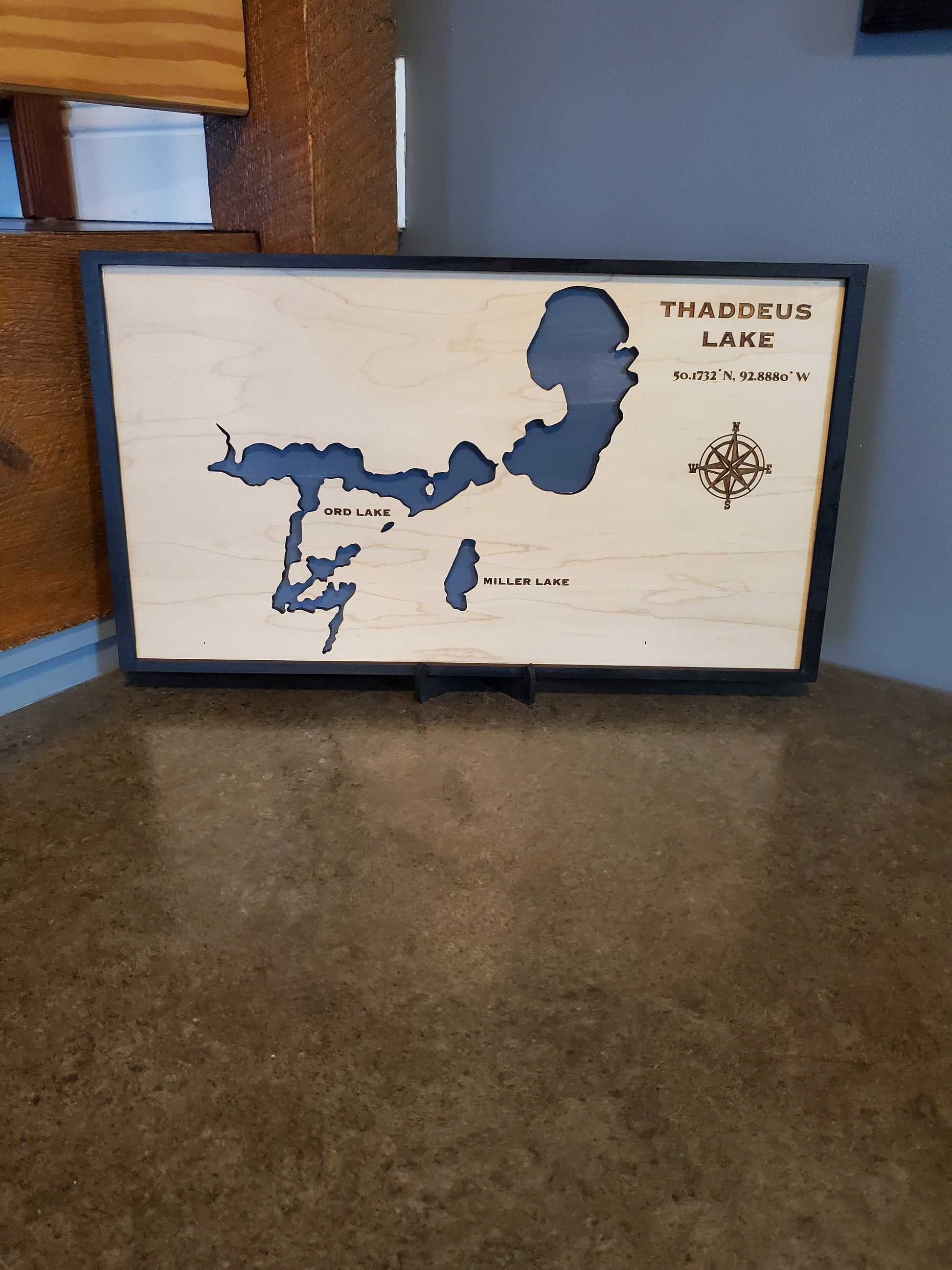 10.75" x 19" Made out of 2-3 layers of 1/4" Pre finished Maple laser wood.