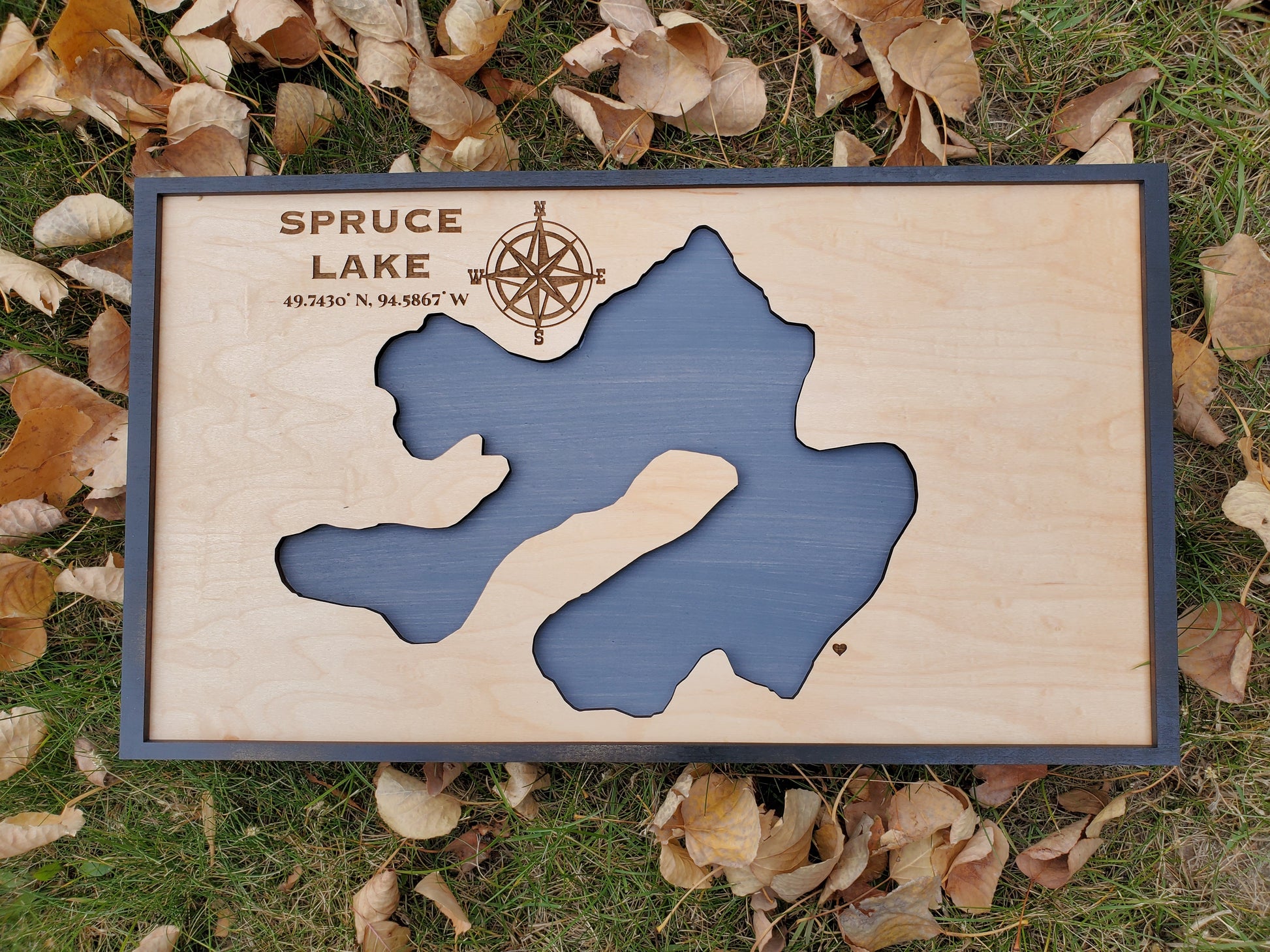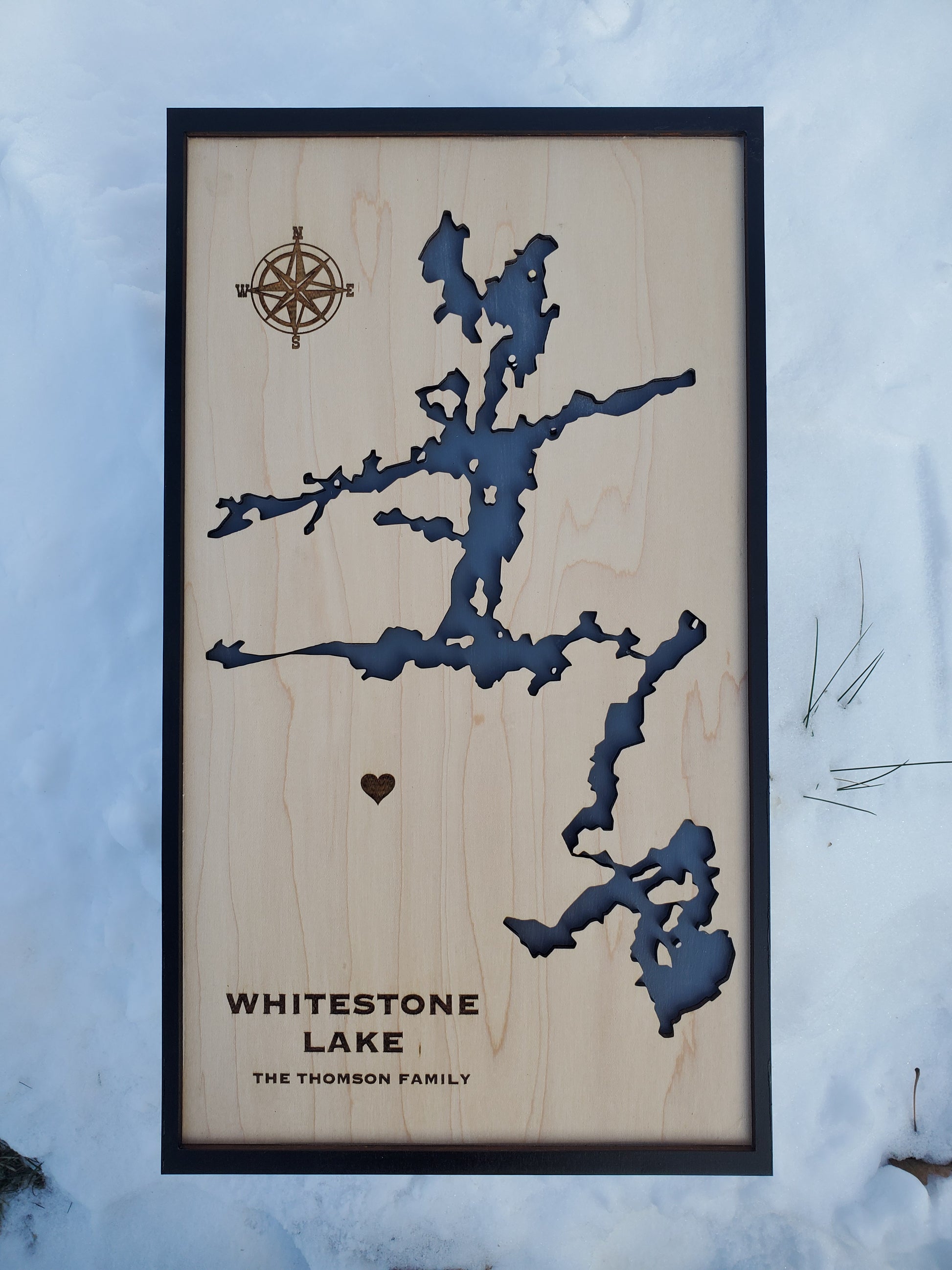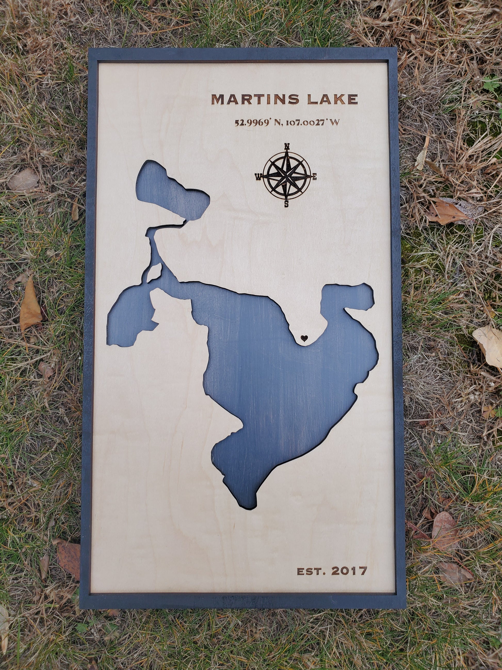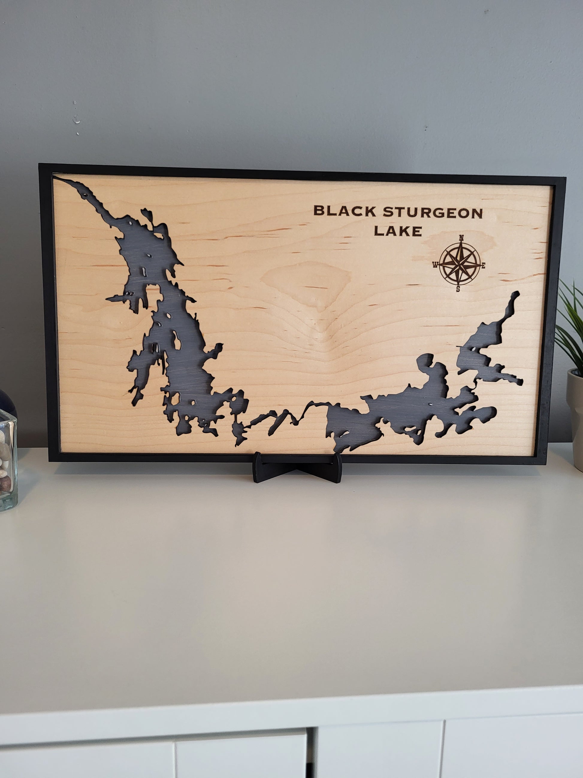 10.75" x 19" Made out of 2-3 layers of 1/4" Pre finished Maple laser wood.